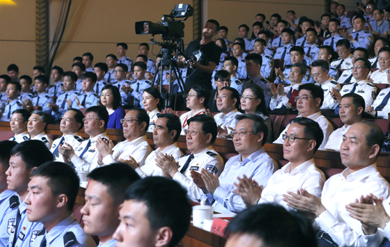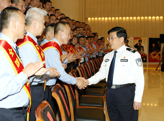 发布活动前,在热烈的掌声中,赵克志与中央和国家机关有关部门负责同志、在京公安部党委委员一起,来到“公安楷模”和公安英模代表中间,向获得“公安楷模”荣誉称号的同志们和公安英烈家属们致以崇高的敬意,向长期奋战在维护稳定一线的广大公安民警、警务辅助人员及其家属表示亲切的慰问。赵克志说,在刚刚结束的全国公安工作会议上,习近平总书记饱含深情地指出,和平时期,公安队伍是牺牲最多、奉献最大的一支队伍。这是党和人民给予我们的最高褒奖。党的十八大以来,全国公安机关和广大公安民警忠实践行对党忠诚、服务人民、执法公正、纪律严明总要求,为捍卫政治安全、维护社会安定、保障人民安宁作出了重要贡献,涌现出一大批先进典型,今天参加活动的“公安楷模”和公安英模们,就是其中的杰出代表。在历届“公安楷模”中,有年仅30岁就在与犯罪分子搏斗中英勇牺牲的马金涛同志,有在带队追捕犯罪嫌疑人时不幸中弹牺牲的贾巴伍各同志,有在执行办案任务时突发病症因公牺牲的老刑警肖俊京同志,有始终坚持战斗在防爆安检最前沿的张保国同志,坚守边疆30年的赵永前同志……在他们身上,集中体现了信念坚定、对党忠诚的政治品格,心系群众、服务人民的公仆情怀,履职尽责、奋发有为的担当精神,他们是全国公安机关和广大公安民警的学习榜样。