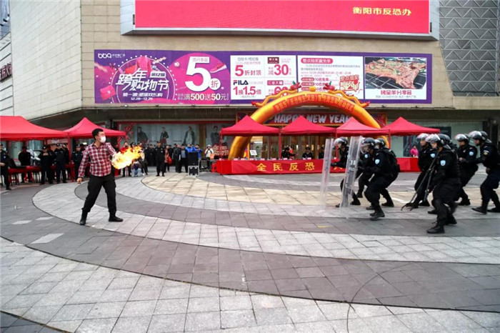 12月24日上午,衡阳市公安局在步步高广场举行《反恐怖主义法》宣传活动,向社会各界和广大人民群众宣传反恐常识,展示反恐装备,以此提高市民的知恐、识恐、防恐的知识和能力。