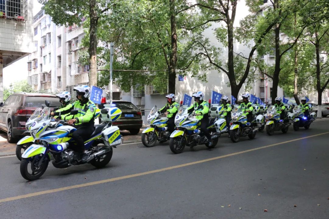 7月10日,祁阳铁骑禁毒宣传车队在警用摩托车车尾插上“绿色无毒健康人生”、“众志成城防毒禁毒”等禁毒口号的宣传旗帜,车队浩浩荡荡地从交警大队集合出发,车队通过街边巡游、使用车载小喇叭播放禁毒宣传音频。