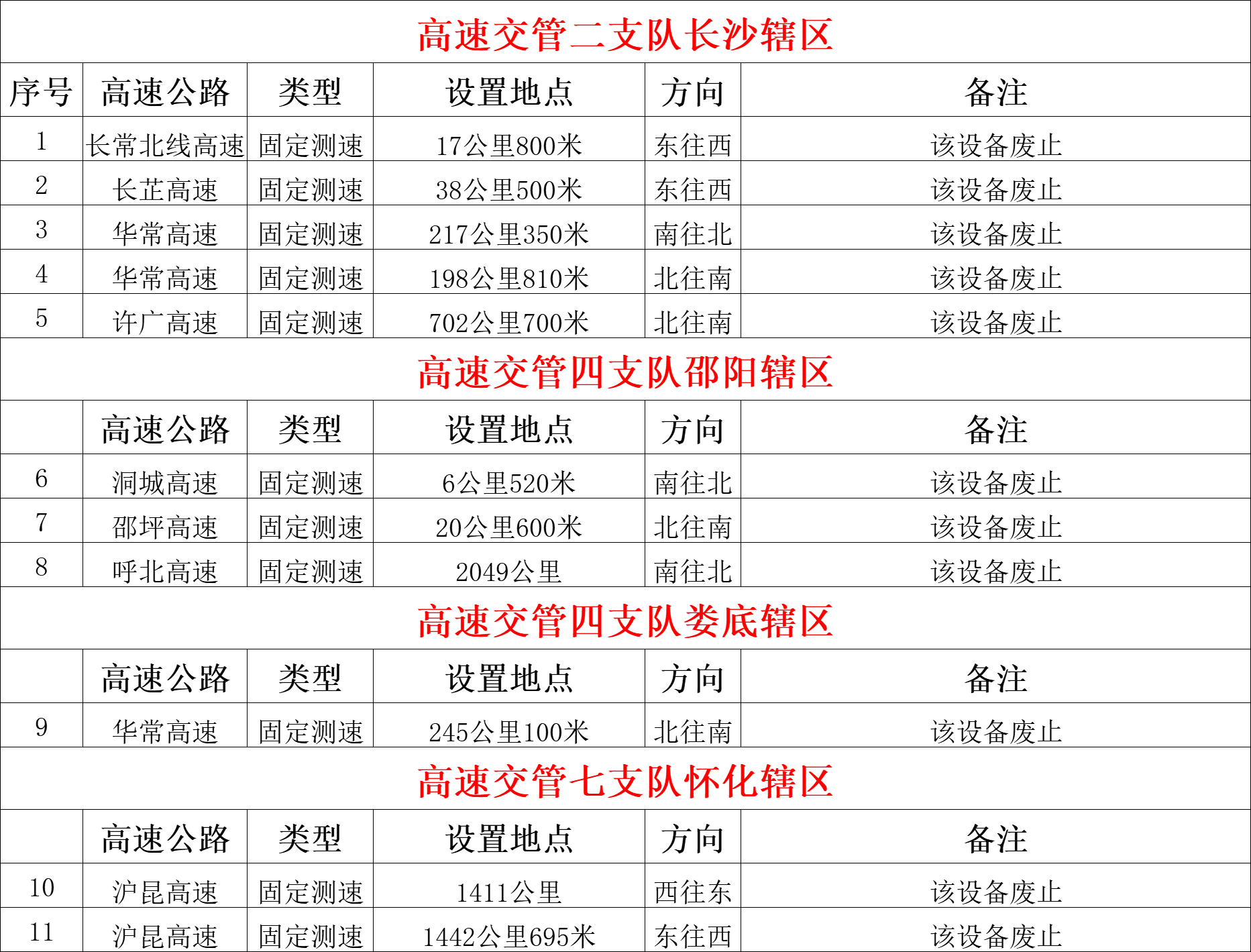 湖南省高速公路新启用33处、停止使用11处测速点位的公示!