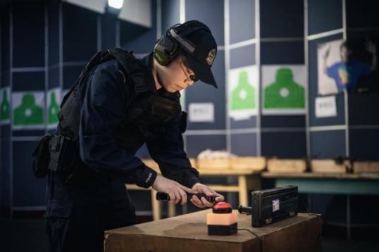 按照比赛安排,首先进行的是92式手枪分解比赛,想要熟练使用警用枪械,首先就得足够了解枪械,枪械的的拆解考验的是学警对于枪械专业知识的应用。各大队参赛选手蓄势待发,赛场气氛剑拔弩张;一片片手枪零件翻飞,参赛选手们训练有素,展现了高超的技能,在数息间完成了手枪拆解。