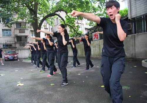 女特警在院落开展拳腿法训练