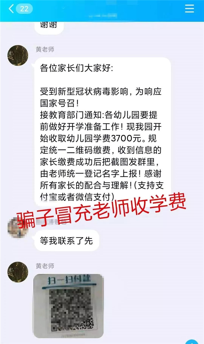 近期,浙江宁波市反诈中心接到数起骗子冒充老师潜入QQ、微信群,以“疫情延期开学”、“网上授课收学费、材料费”为由实施诈骗的警情,宁波已有4名家长被骗。