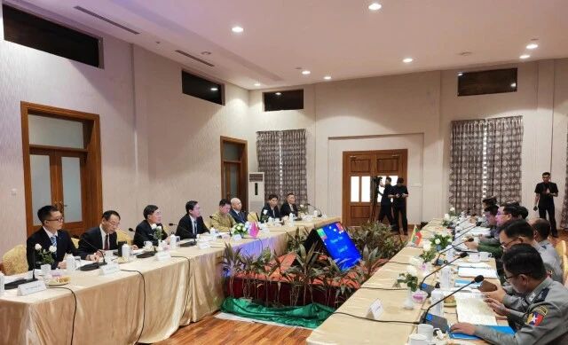 (9月19日上午,王一鸥与缅甸内政部副部长都意少将会晤交流。通讯员摄)