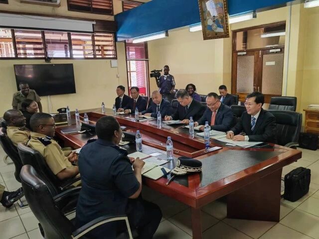 (9月12日下午,王一鸥与马拉维警察总监约拉姆会晤交流。通讯员摄)