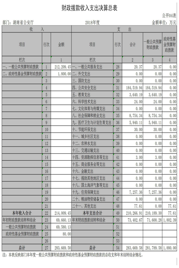 第三部分 湖南省公安厅2018年度部门决算情况说明