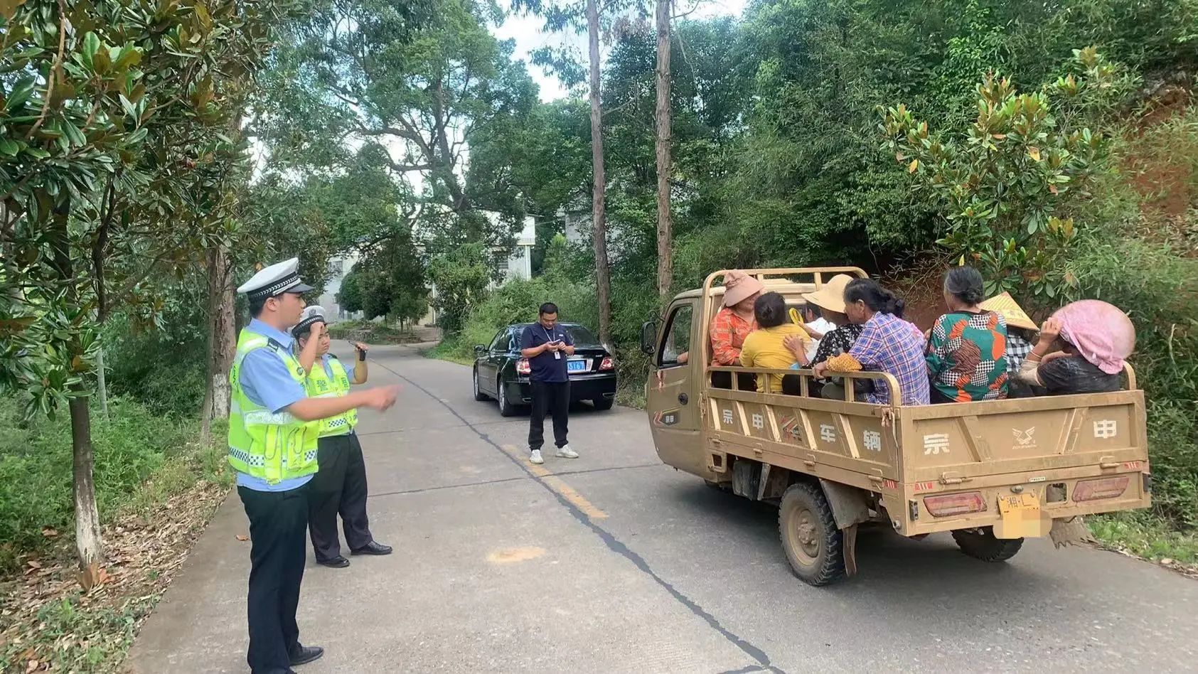 7月17日,郴州交警在华塘镇曹家田村开展整治行动时,发现一辆三轮车违法载人,随即要求该车接受检查。